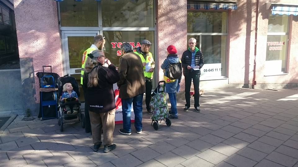 Den 4/10 delade vi ut flygblad och bjöd på kaffe och kakor i Aspudden. Sex aktivister kom för att sprida nyheter från Vänsterpartiets förhandlingar med regeringen om budgeten, och om det gånga rödgrönrosa året i Stockholms stad.