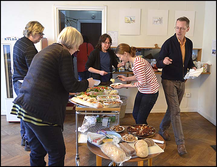 Vi räknar med att kunna avsluta mötesdelen av årsmötet kl 16:00 och sedan blir det mat och umgänge. Vi tycker att det är bra om vi får tid att prata med varandra och lära känna varandra ännu bättre. I år blir det i form av knytis. Styrelsen ansvarar för att det finns kaffe, te, bröd, dryck och sallad på plats. Sedan får alla komplettera med något gott och passande. Ta med så att det räcker till några stycken. Så ska vi nog få en god och trevlig stund tillsammans.